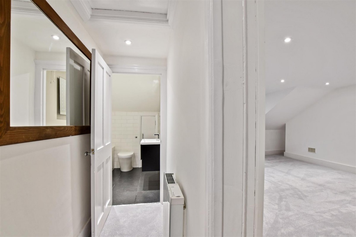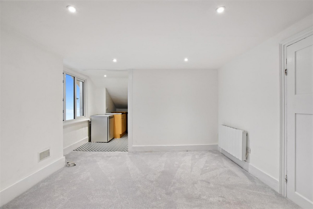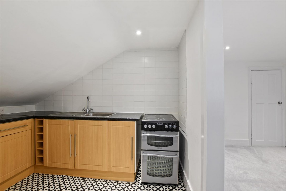Available June 2025 - Unfurnished. A refurnished top floor "garret" style apartment situated in a large Victorian house close to the center of Wallington. Comprising the entire top floor of this substantial character building, the flat affords a good size living room, well equipped kitchen and a huge (15 ft x 15 ft approx.) main bedroom, whilst the bathroom has been refitted with a bath with a thermostatic shower over. In addition, there is a good size "boot room" area on the entrance level, whilst the paneled hallway to the flat is large enough for a computer area or a futon for occasional visitors. The property has been recently refurbished with LED ceiling lights and fully insulated loft. Additionally the apartment has a large storage room, plentiful loft storage, an allocated parking space and is situated less than 10 minutes walk from Wallington BR station & Town Centre.