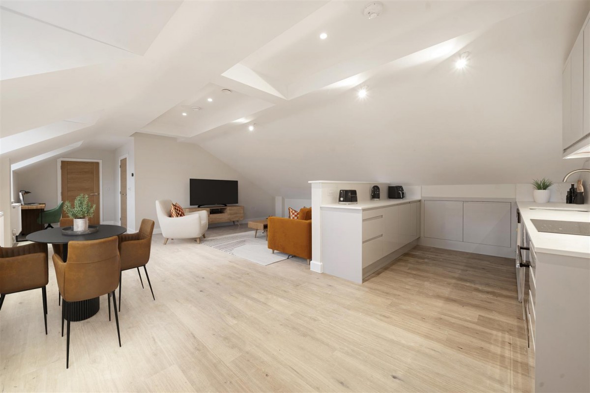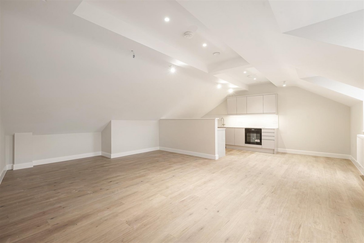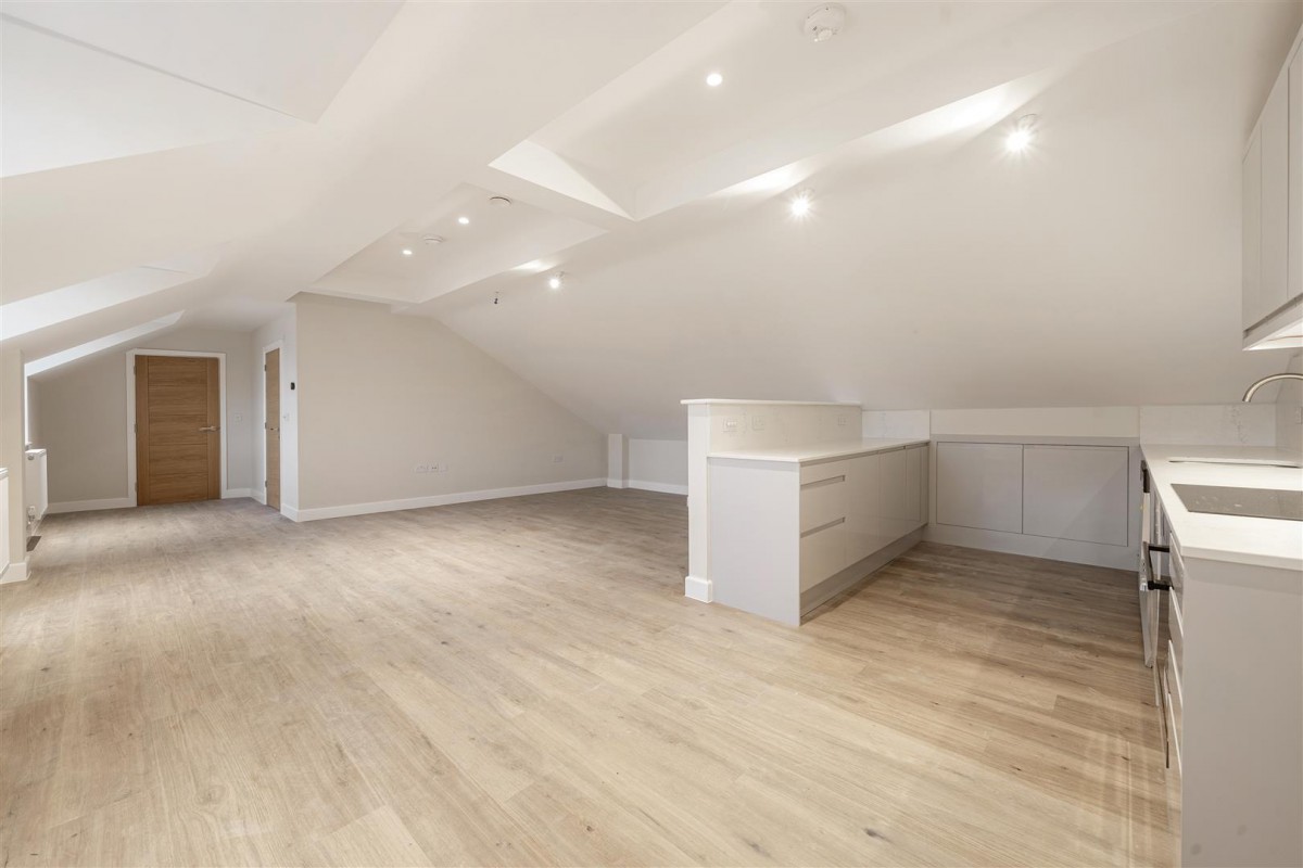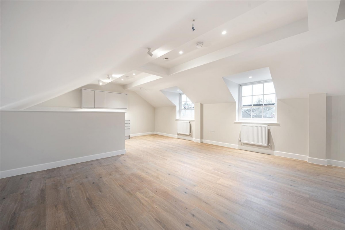 Flat 9 Bluebird House is an absolutely MASSIVE one bedroom penthouse apartment, located on a private development of 14 individual homes, right in the heart of Ewell Village. At almost 750 sq ft, this generously proportioned apartment features a bright & airy living space with ample space for a large living room, dining area, home office and a luxuriously appointed fully integrated kitchen. In addition, there is a beautifully styled bathroom suite and a stunning double bedroom with French doors opening onto a sizable terrace with rooftop views over Ewell Village and the surround area. Overall, a real "wow factor" apartment!