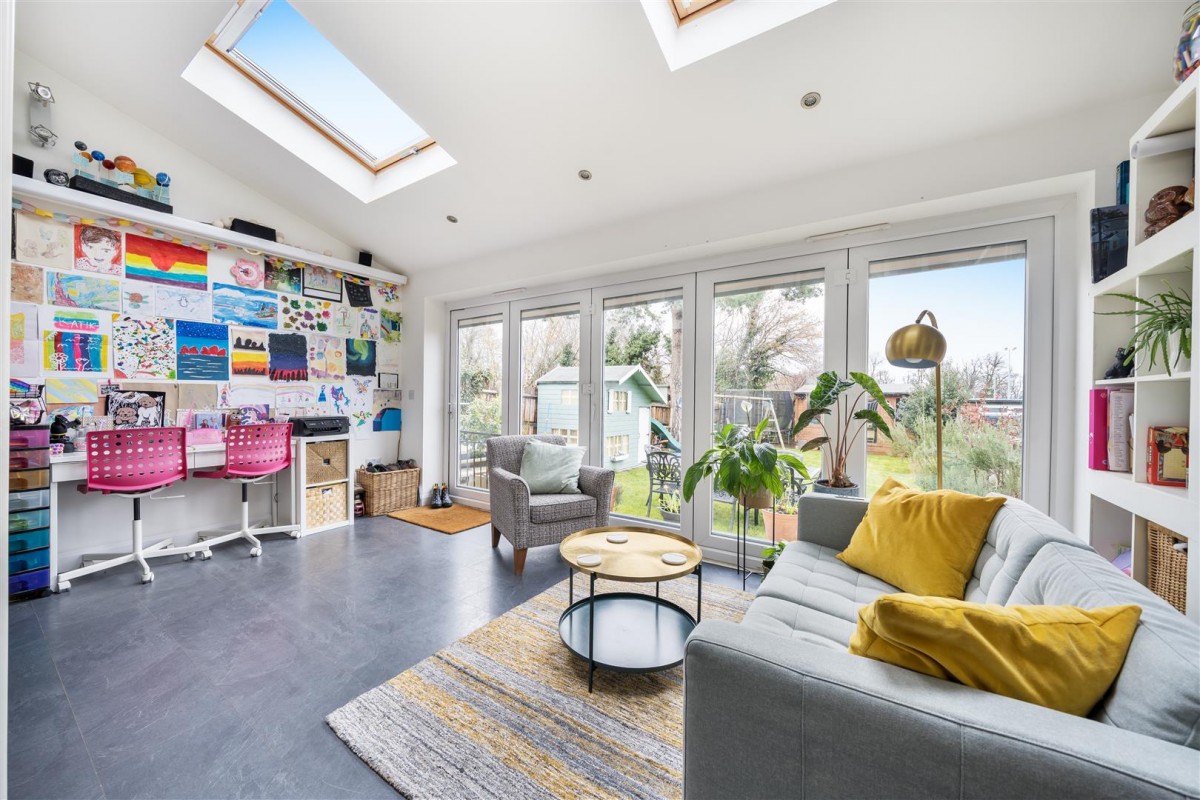 ursery area on the top floor! Added to the original accommodation, the property affords a welcoming entrance hall, a downstairs toilet, a large "through" lounge/dining room, the family room and a beautiful kitchen with hardwood work surfaces on the ground floor, with two generous bedrooms, a single bedroom and a refitted family bathroom on the middle floor and the master suite above! Externally,the attached garage has been partially converted for use as a utility room whilst still affording substantial storage facilities, there is off street parking for one/two vehicles, and the rear garden is a particular delight. Extending almost 70 ft in length, and backing onto allotments, steps from the rear patio lead down onto a mature lawn with well stocked surrounding borders but the garden also incorporates a useful 13'6 x 13'6 timber home office/playroom/gym. Every detail of the house exudes "quality" - with no expense being spared in the production of this stunning family home - so we strongly recommend booking a viewing! Call us today to arrange your appointment to visit.